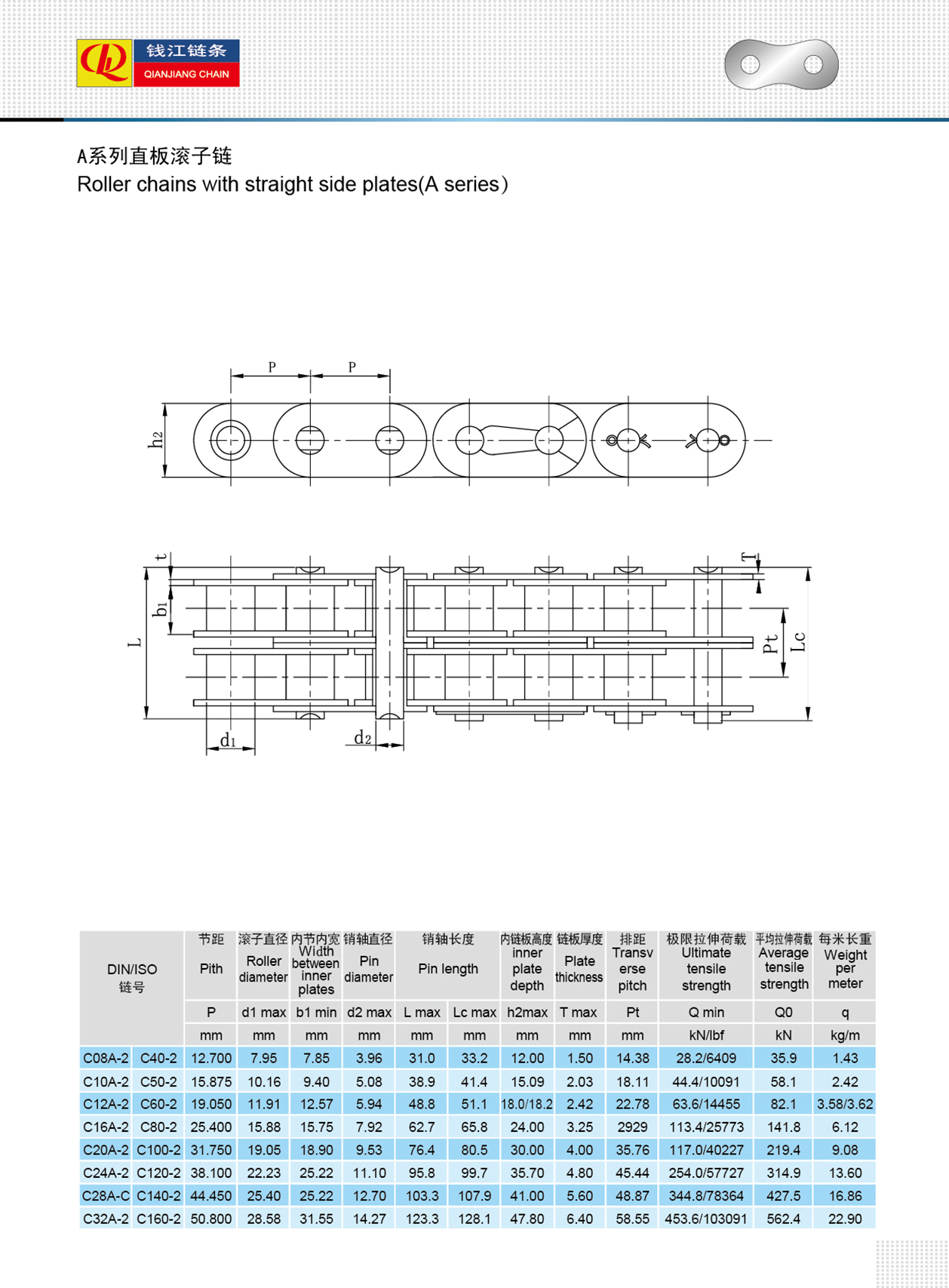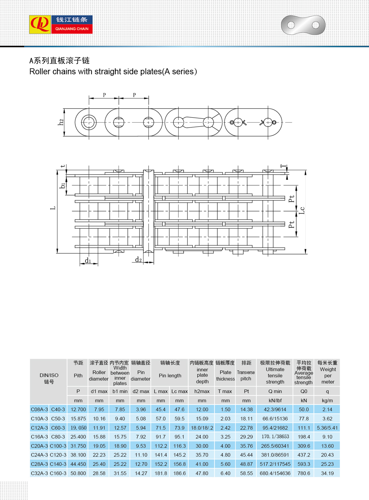 Rullkedjor med rak sidoplåt (A-serien)